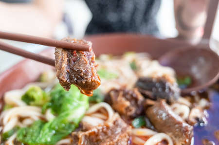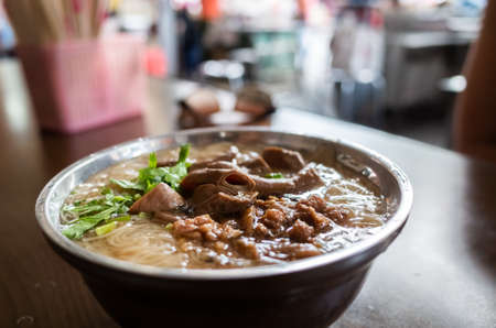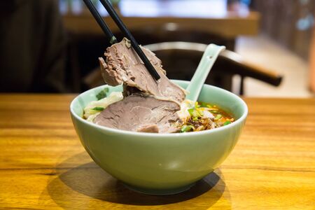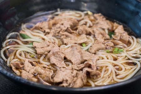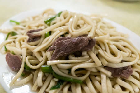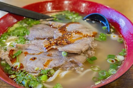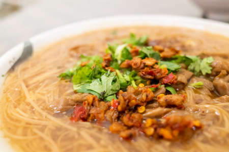 Noodle with slice of raw beef, famous cuisine in Kinmen of Taiwan
