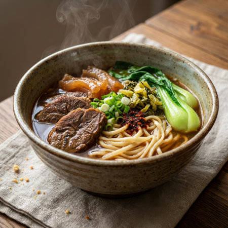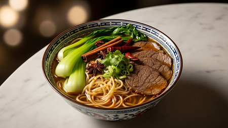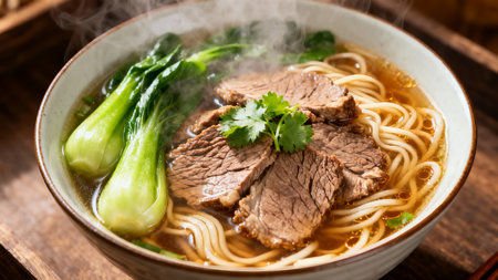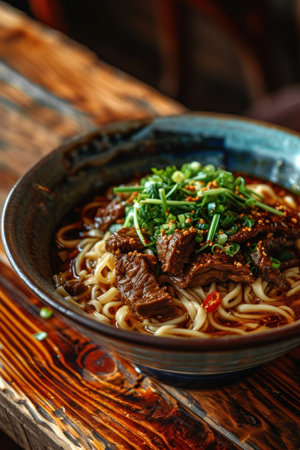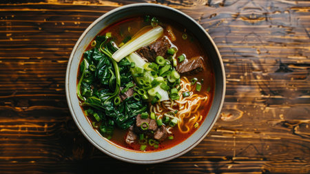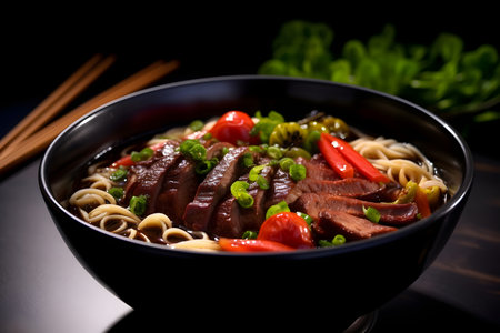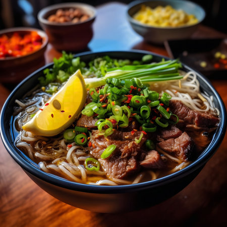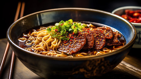 AI Generated. Beef Noodle Soup Garnished with Fresh Green Onions