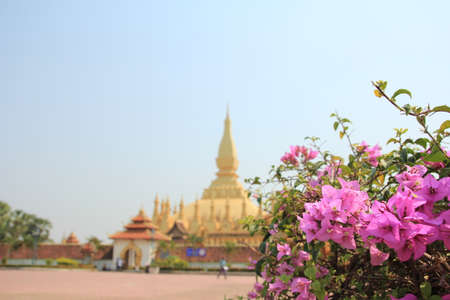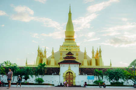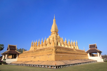 Golden temple architecture in vientienne Pha That Luang and its place in Vientiane, Laos.