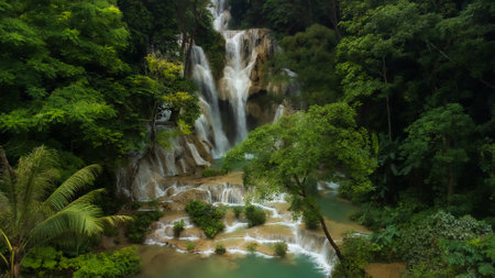 Beautiful waterfall in tropical forest, Luang Prabang, Laos