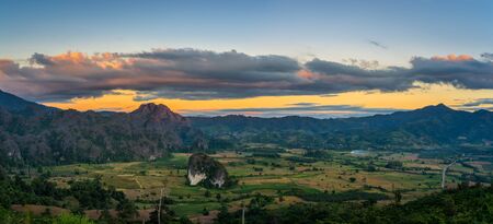 Beautiful sunset on rocky Limestone Mountain and green forest with blu sky at Chiang doa national park in Chiangmai, Thailand