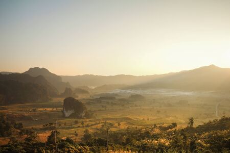 Landscape. Beautiful sunrise at Phu Lang Ka, Phayao in Thailand.