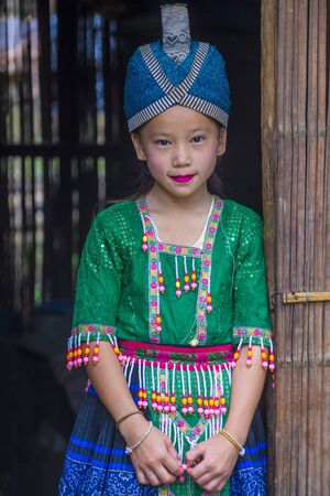 BAM NA OUAN , LAOS - AUG 13 : Girl from the Hmong Minority in Bam Na Ouan village Laos on August 13 2018. The Hmong minority is one of the 49 ethnic groups of Laos