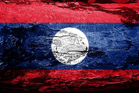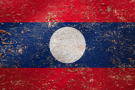 National flag of Laos on old peeling wall background.The concept of national pride and symbol of the country.