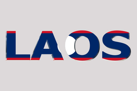 3D Flag of Laos on a text background.