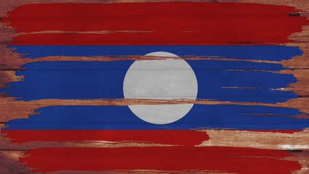 Lao P.D.R. flag painted on wood plank background. Brushed natural light knotted wooden board texture. Wooden texture background flag of Lao P.D.R.