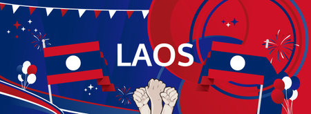 Laos National Day modern greeting banner. 2 December as Laos National Independence Day. Festive horizontal background with flag colors, great for carnival poster, celebrations, holidays flash sale