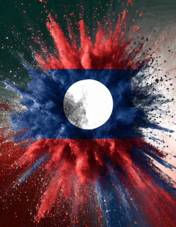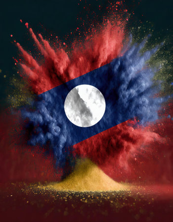 Laos colorful flag holi paint powder explosion on isolated background, generated by AI. High quality photo