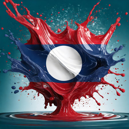Laos flag paint liquid explosion on isolated background, generated by AI. High quality photo