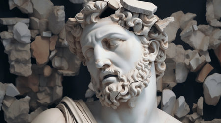 Dramatic portrait of a classical marble sculpture
