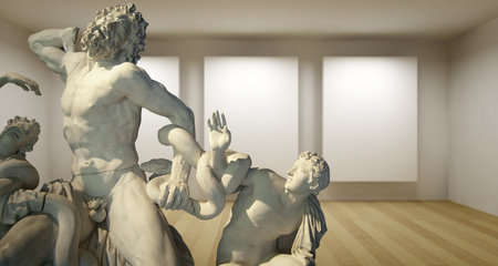 Caroonte, Empty gallery, 3d room with greek sculture, Ancient Statue