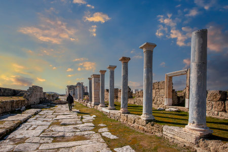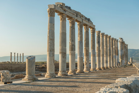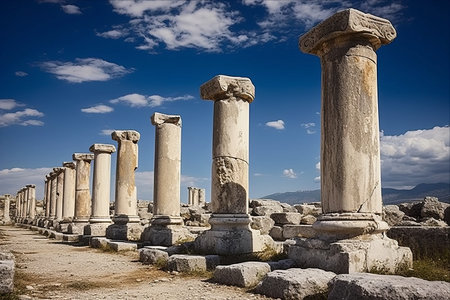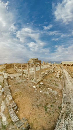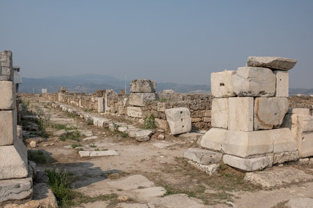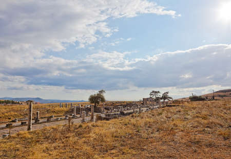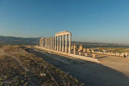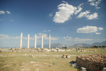 Colonnaded street of Laodicea on the Lycus in Turkey. Ancient Laodicea city stands as a testament to the enduring legacy of the Roman Empire and its contributions to the rich heritage of Turkey.