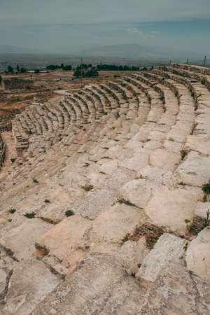 Ancient Roman amphitheater made of stone under the open sky in Pamukkale in Turkey