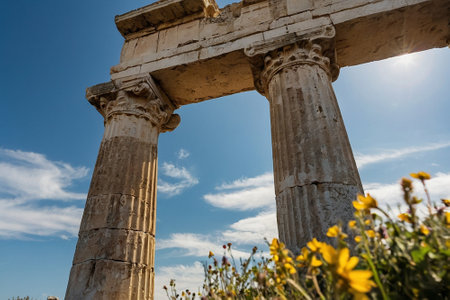 Revealing the Magnificence: Ancient Columns Bathed in Daylight
