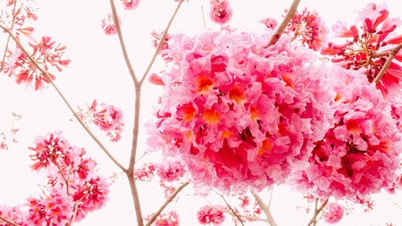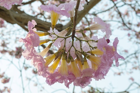 tabebuya flower blossom on blue sky