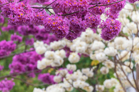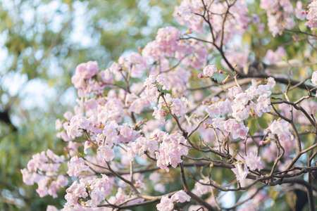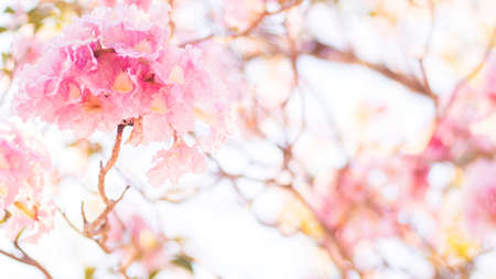 Selective focus soft light Beautiful Pink Trumpet flower or Tabebuia heterophylla
