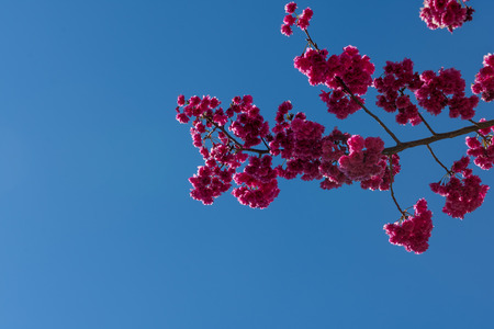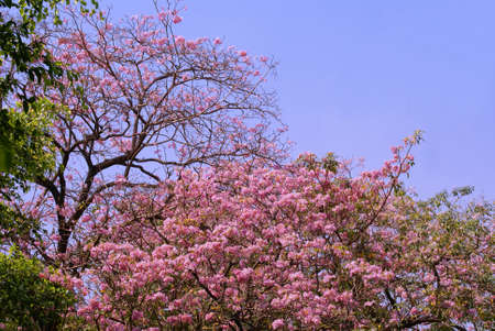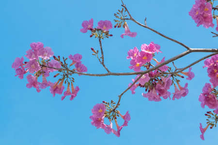 Tabebuia or Pink Trumpet Tree blossom on blue sky