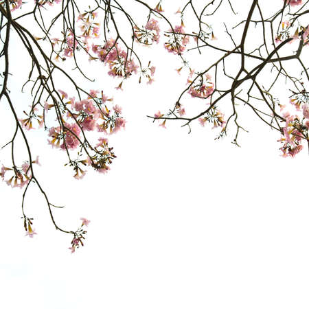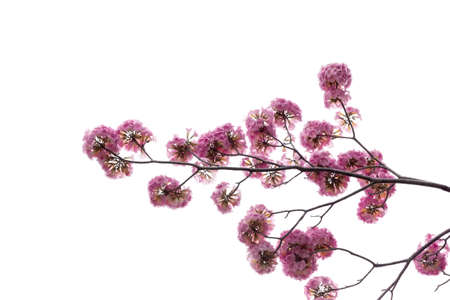 Pink trumpet or Tatebuia flower isolated in white