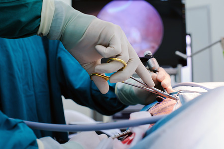 veterinarian doctor in operation room for laparoscopic surgical