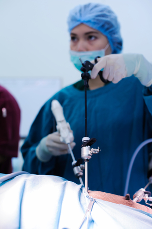 Process of surgery operation using laparoscopic equipment.
