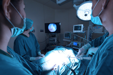 surgical operation with laparoscopic equipment in surgery room
