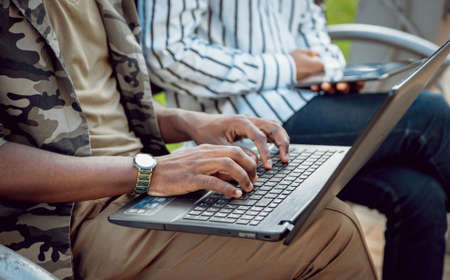 Human hands working on laptop