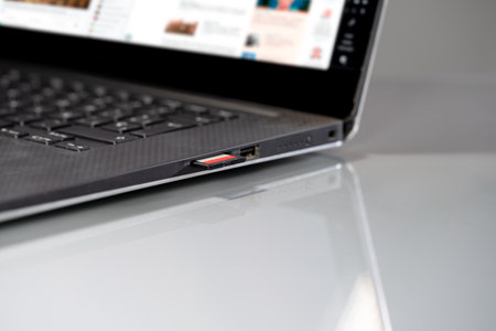 Enhanced Connectivity: A Close-Up of an SD Card Reader Seamlessly Integrated in a Laptop