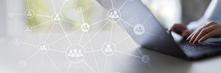 HR Recruitment, Organizational Structures, and Digital Networking in a Connected Workplace on a Wide Banner, Business and Technology Concept.