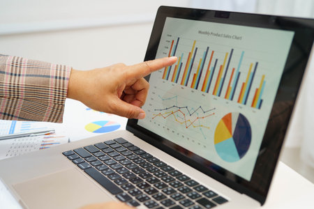 business data graph on laptop with copy space for making meeting presentation, professional businessman busy work on the business data graph