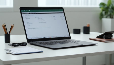 AI Generative Work on Laptop at Desk in Office, remote work on notebook, open space in the business center