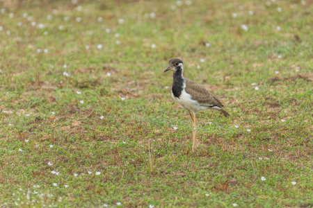 Spur-winged lapwing (Vanellus spinosus) foraging in the grass.