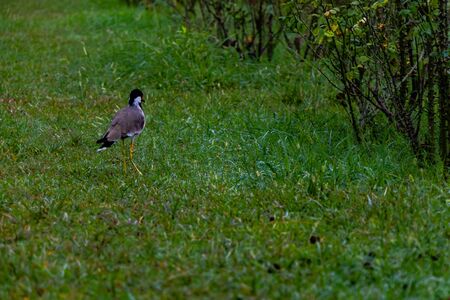 beautiful shot of red-wattled lapwing rove on grass in the garden. nature concept
