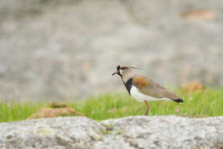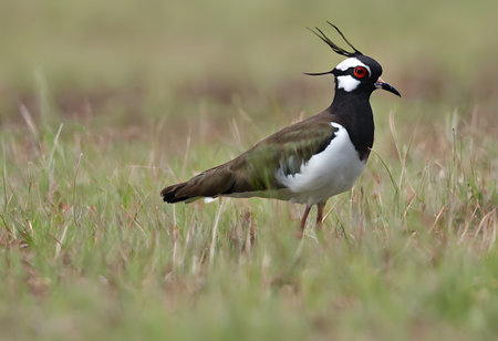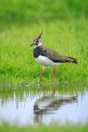 Northern lapwing. Vanellus vanellus standing on grassland in Villafafila wetlands