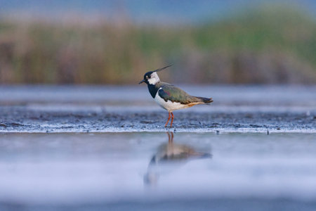 Northern lapwing (Vanellus vanellus) searching for food in the wetlands in summer.