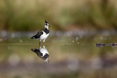 Northern lapwing, Vanellus vanellus, single bird in water, Warwickshire, August 2013