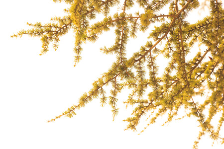 The leaves of larch tree with white background in vintage style in Ifrane city Morocco.