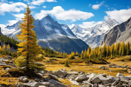 Captivating Natural Beauty: Rocky Mountain Meadow Amidst Larch Trees and Majestic Ranges in British Columbia, Canada