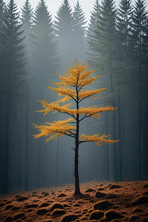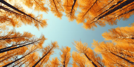 Generative AI : Larch trees with yellow autumnal deciduous foliage