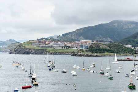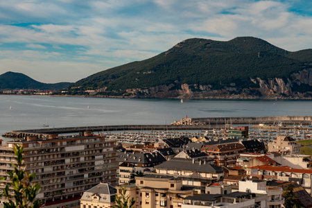 Laredo, Spain. Scenic seascape view of the town of Laredo, with the harbor and La Atalaya, a volcanic cone