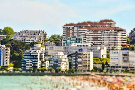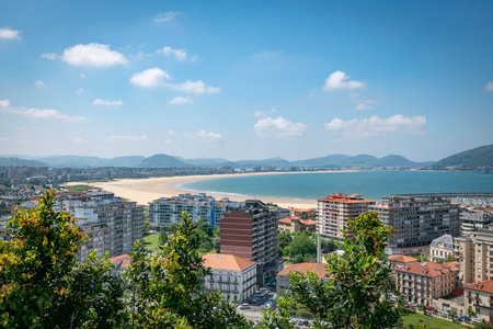 Panoramic of people walking on the beautiful beach of Fuenterrabia, Guipuzcoa. Basque Country