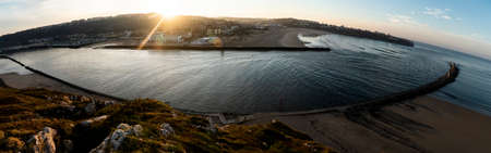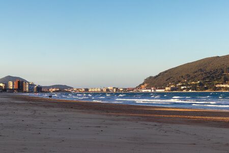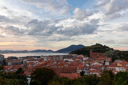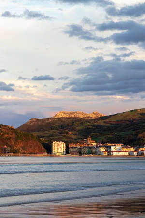 Panoramic at sunset on the beautiful beach of Fuenterrabia, Gipuzkoa. Basque Country