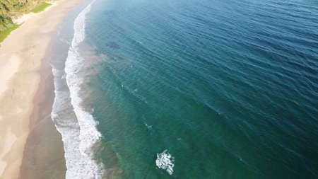 Aerial view of an emerald green sea and big foaming waves. Indian Ocean. Dikwella beach. Sri Lanka