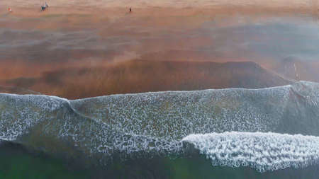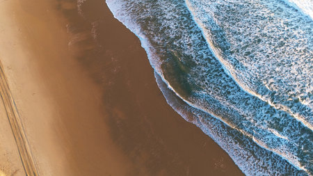 Overhead Drone View of Ocean Waves Meeting Sandy Beach