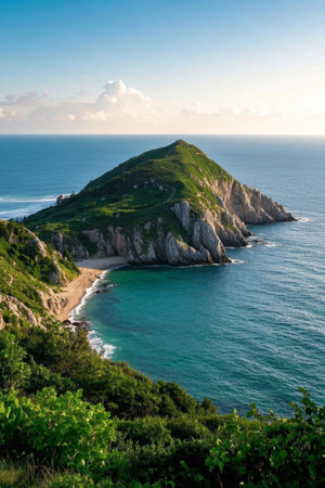 Seaside hills and blue sea natural scenery