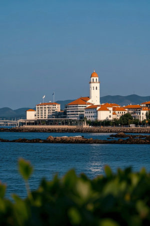 White buildings and lighthouse views on the waterfront