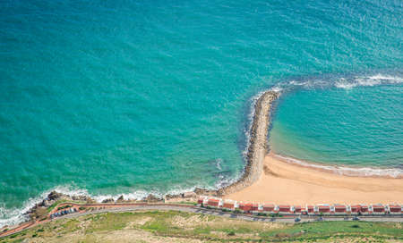 A magnificent landscape, the rock is a view from above, and the serpentine road is visible on the rock, and the blue ocean below