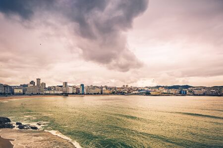 seascape of Riazor beach in a clouded day of A Coruna, Spain