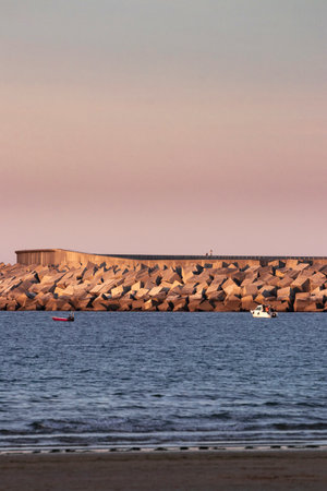 Beautiful sunset over the sea on the beach of Las Arenas in Getxo