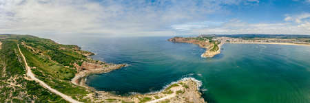 Aerial view over the village and bay of São Martinho do Porto, west Portugal