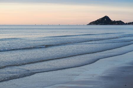 dusk Florianopolis beach, morro das Pedras in Portuguese, with space for writing.